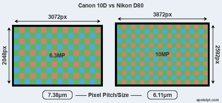 | Sensor Specs | Canon 10D | Nikon D80 |