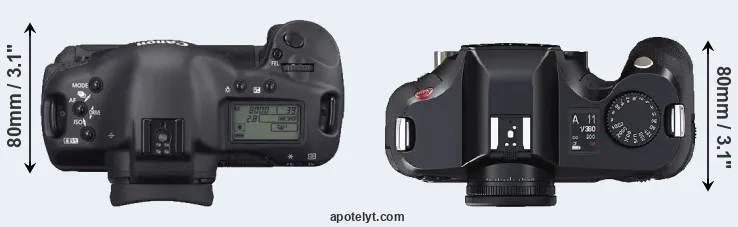 | 7. | Canon 1Ds Mark II | 156 mm | 158 mm | 80 mm | 1215 g | 1200 | Y | Sep 2004 | US$ 7 999 | ebay.com | |