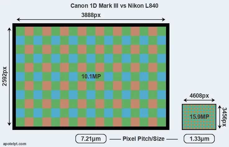 | Sensor Specs | Canon 1D Mark III | Nikon L840 |