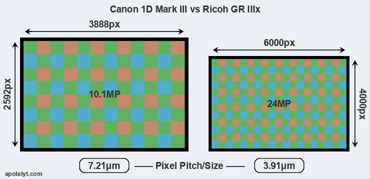 | Sensor Specs | Canon 1D Mark III | Ricoh GR IIIx |