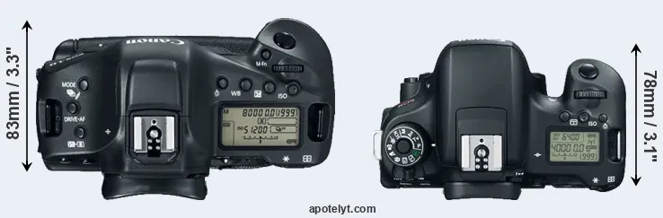 | 8. | Canon 5D Mark III | 152 mm | 116 mm | 76 mm | 950 g | 950 | Y | Mar 2012 | US$ 3 499 | ebay.com | |