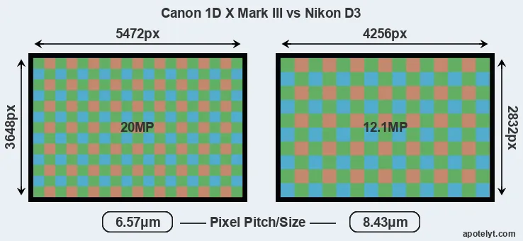 | Sensor Specs | Canon 1D X Mark III | Nikon D3 |
