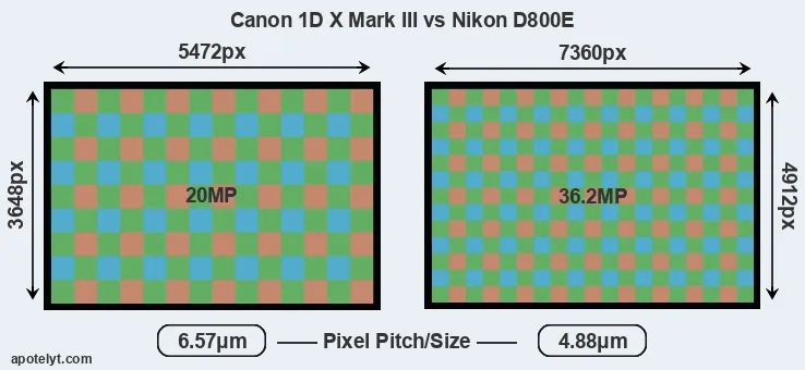 | Sensor Specs | Canon 1D X Mark III | Nikon D800E |