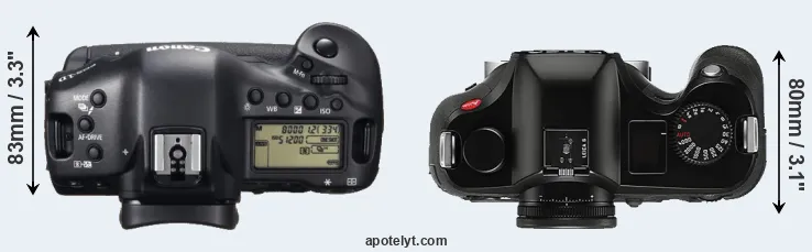Going beyond this snapshot of core features and characteristics, what are the differences between the Canon EOS-1D X and the Leica S (Typ 006)? Which one should you buy? Read on to find out how these two cameras compare with respect to their body size, their imaging sensors, their shooting features, their input-output connections, and their reception by expert reviewers.