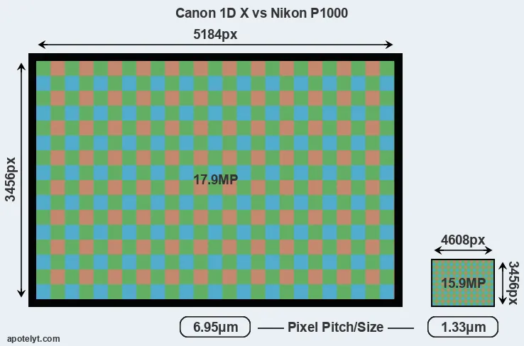 | Sensor Specs | Canon 1D X | Nikon P1000 |