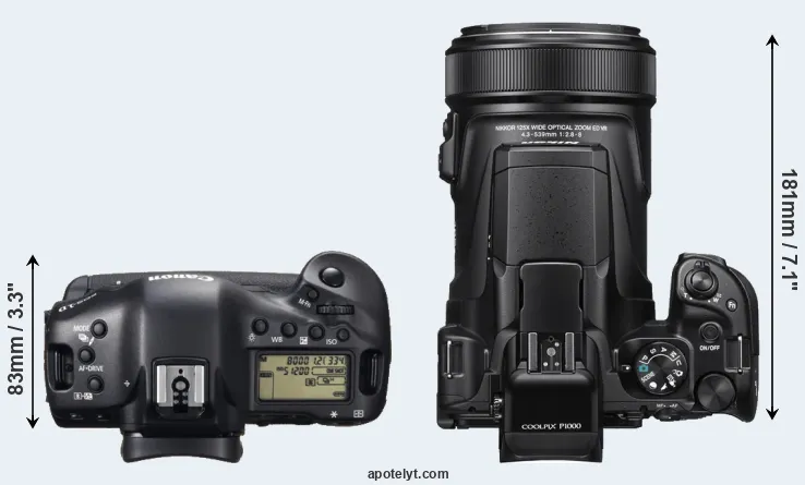 | Body Specs | Canon 1D X | Nikon P1000 |