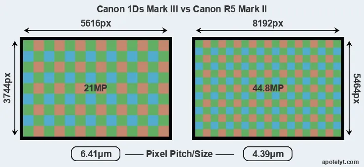 | Sensor Specs | Canon 1Ds Mark III | Canon R5 Mark II |