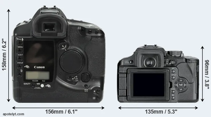 | 1. | Canon 1Ds | 156 mm | 158 mm | 80 mm | 1265 g | 600 | Y | Sep 2002 | US$ 8 999 | ebay.com | |