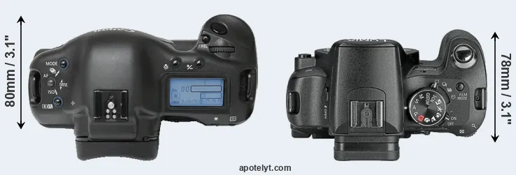 | 7. | Canon 1Ds Mark II | 156 mm | 158 mm | 80 mm | 1215 g | 1200 | Y | Sep 2004 | US$ 7 999 | ebay.com | |