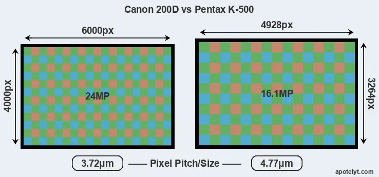 | Sensor Specs | Canon 200D | Pentax K-500 |