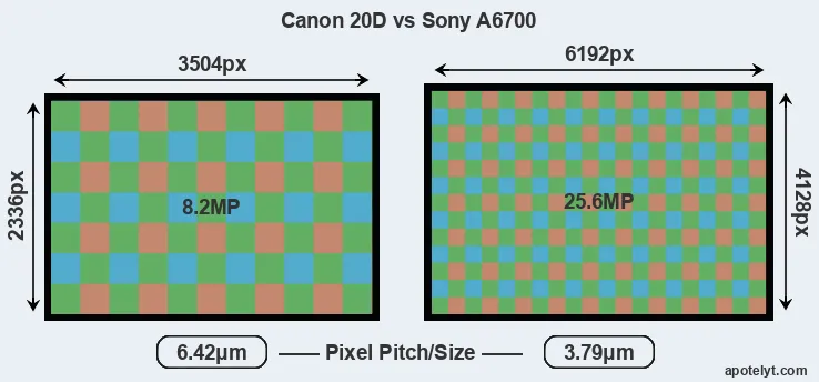 | Sensor Specs | Canon 20D | Sony A6700 |