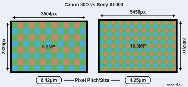 | Sensor Specs | Canon 30D | Sony A5000 |