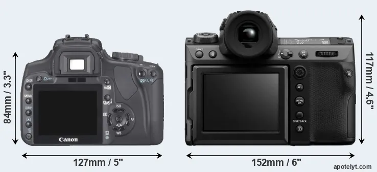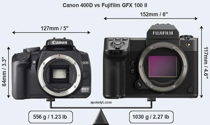 | Body Specs | Canon 400D | Fujifilm GFX 100 II |