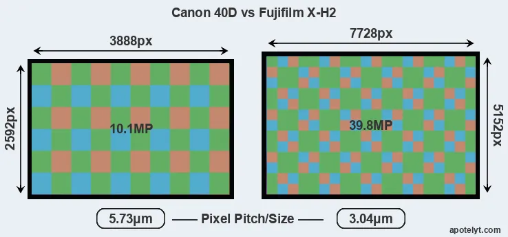| Sensor Specs | Canon 40D | Fujifilm X-H2 |