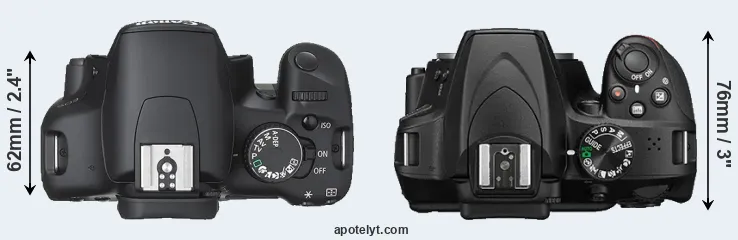 | 2. | Nikon D3400 | 124 mm | 98 mm | 76 mm | 445 g | 1200 | n | Aug 2016 | US$ 499 | ebay.com | |