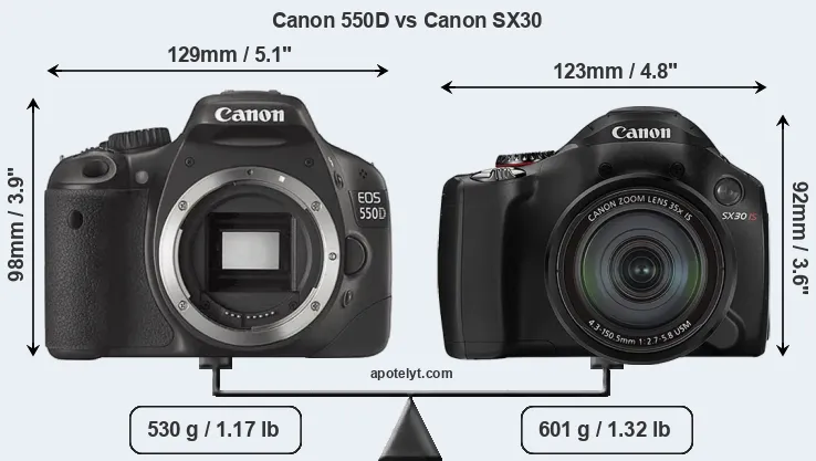 | Body Specs | Canon 550D | Canon SX30 |
