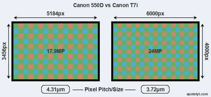 | Sensor Specs | Canon 550D | Canon T7i |