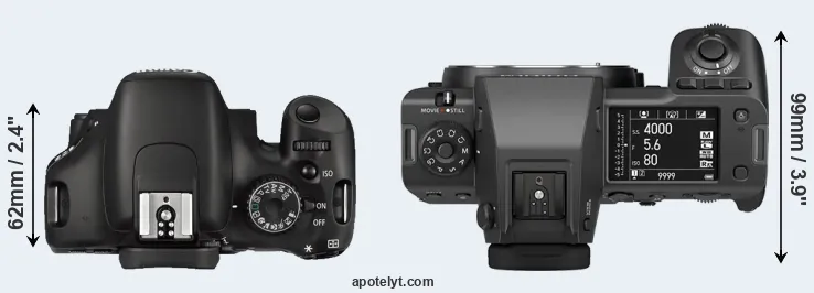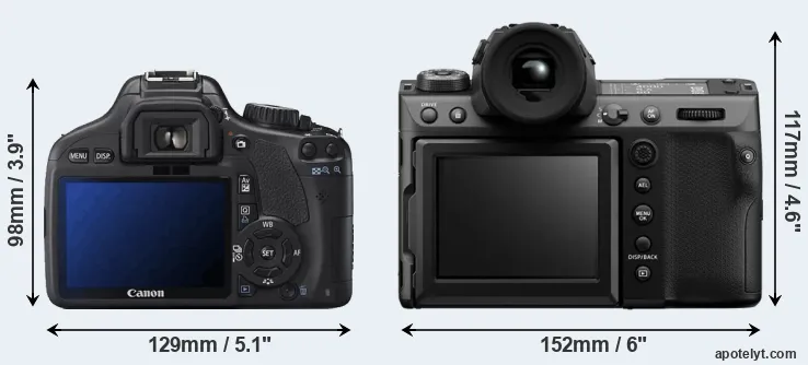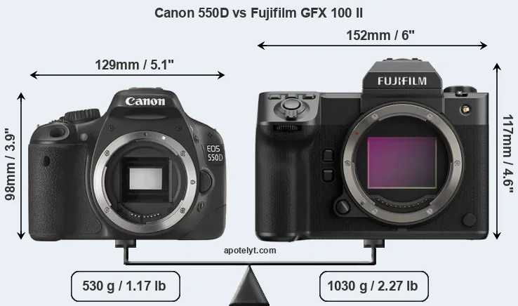 | Body Specs | Canon 550D | Fujifilm GFX 100 II |