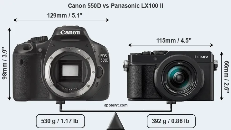 | Body Specs | Canon 550D | Panasonic LX100 II |