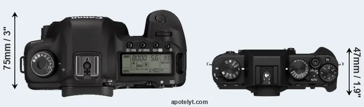 Compare 5D Mark II versus X-T30 II top
