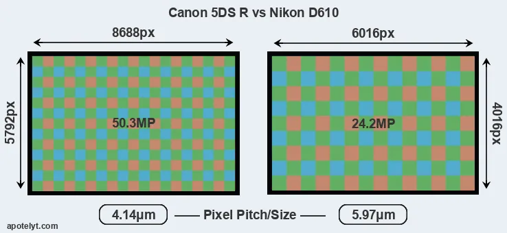 | Sensor Specs | Canon 5DS R | Nikon D610 |