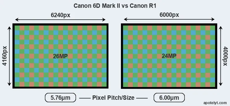 | Sensor Specs | Canon 6D Mark II | Canon R1 |