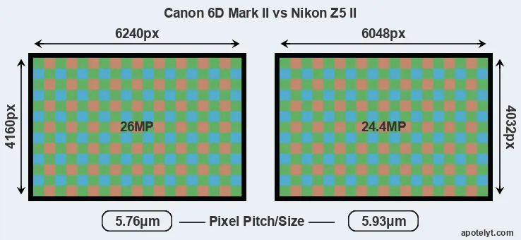 | Sensor Specs | Canon 6D Mark II | Nikon Z5 II |