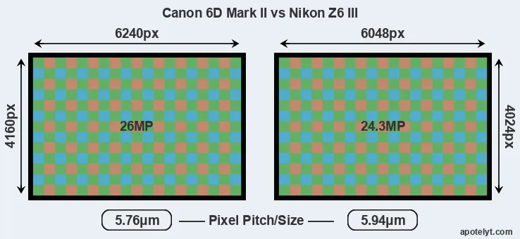 | Sensor Specs | Canon 6D Mark II | Nikon Z6 III |