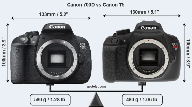 Size Canon 700D vs Canon T5