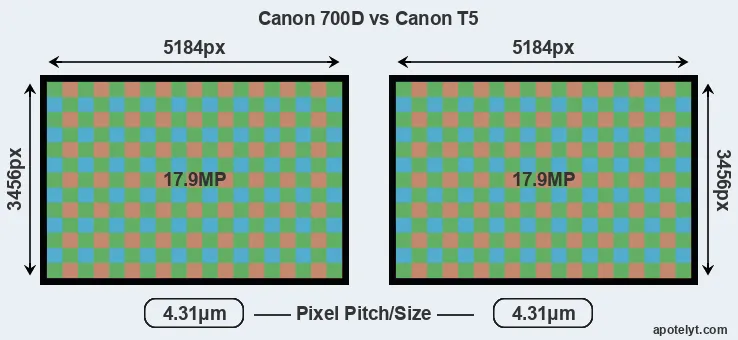 Canon 700D and Canon T5 sensor measures