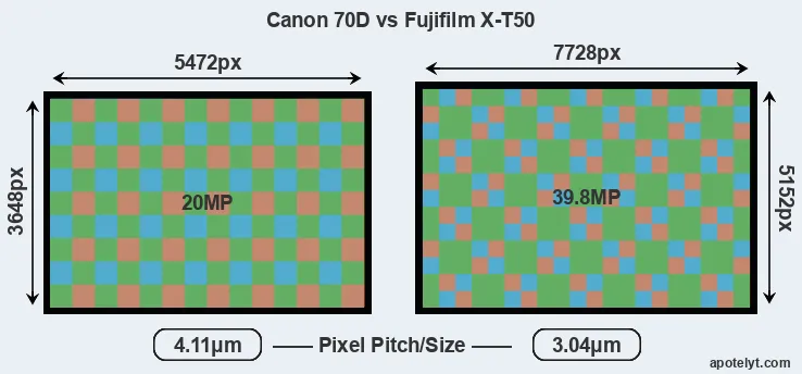 | Sensor Specs | Canon 70D | Fujifilm X-T50 |