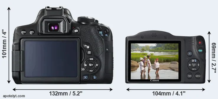 | 1. | Canon 750D | 132 mm | 101 mm | 78 mm | 555 g | 440 | n | Feb 2015 | US$ 749 | ebay.com | |