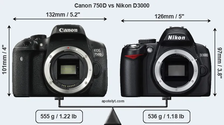 | Body Specs | Canon 750D | Nikon D3000 |