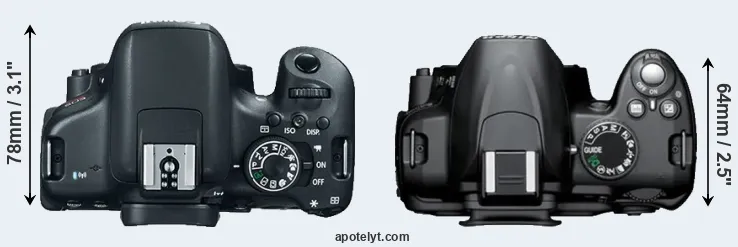 | 5. | Canon 700D | 133 mm | 100 mm | 79 mm | 580 g | 440 | n | Mar 2013 | US$ 649 | ebay.com | |
