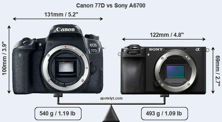 | Body Specs | Canon 77D | Sony A6700 |
