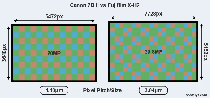 | Sensor Specs | Canon 7D II | Fujifilm X-H2 |