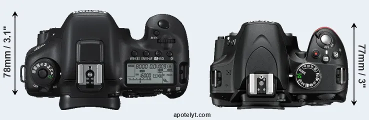 | 8. | Canon 80D | 139 mm | 105 mm | 79 mm | 730 g | 960 | Y | Feb 2016 | US$ 1 199 | ebay.com | |