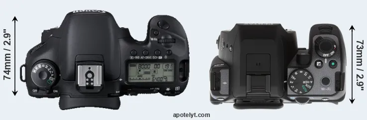 | 15. | Pentax K-70 | 126 mm | 93 mm | 74 mm | 688 g | 410 | Y | Jun 2016 | US$ 649 | ebay.com | |