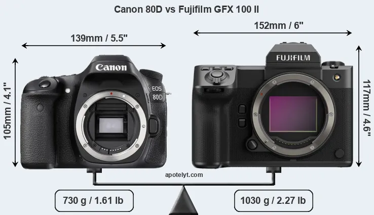 | Body Specs | Canon 80D | Fujifilm GFX 100 II |