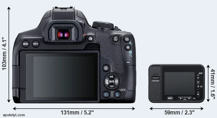 | 5. | Canon 250D | 122 mm | 93 mm | 70 mm | 449 g | 1070 | n | Apr 2019 | US$ 599 | amazon.com | |