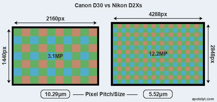 | Sensor Specs | Canon D30 | Nikon D2Xs |