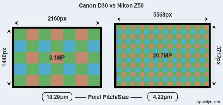 | Sensor Specs | Canon D30 | Nikon Z50 |