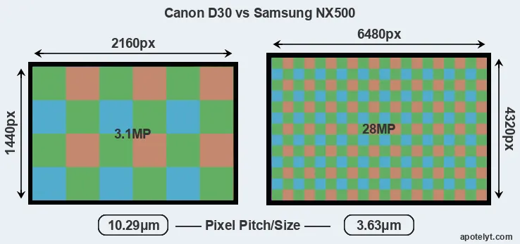 | Sensor Specs | Canon D30 | Samsung NX500 |