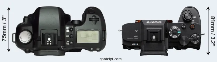 | 13. | Sony A7R III | 127 mm | 96 mm | 74 mm | 650 g | 650 | Y | Oct 2017 | US$ 3 199 | ebay.com | |