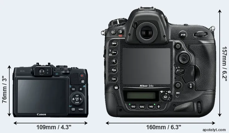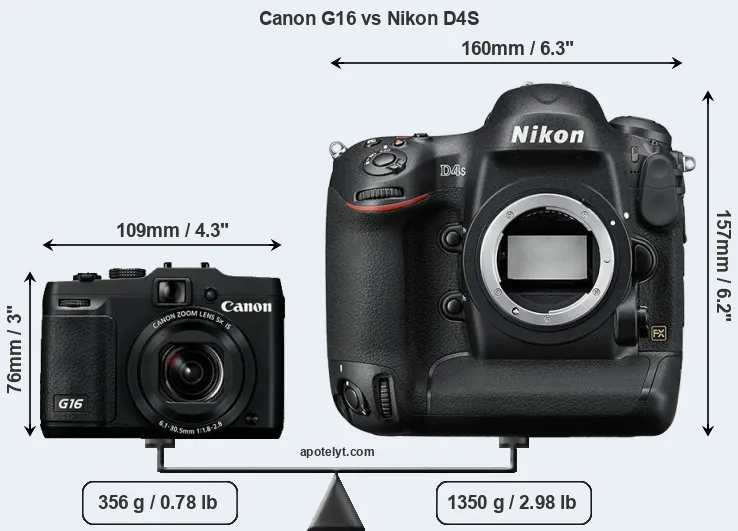 Size Canon G16 vs Nikon D4S