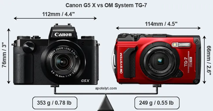 | Body Specs | Canon G5 X | OM System TG-7 |