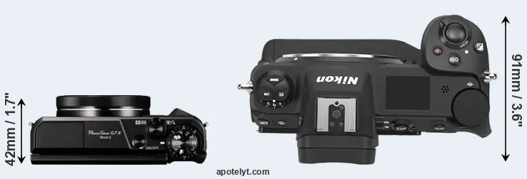 The above size and weight comparisons are to some extent incomplete and possibly misleading, as the G7X Mark II has a lens built in, whereas the Z9 is an interchangeable lens camera that requires a separate lens. Attaching the latter will add extra weight and bulk to the setup.