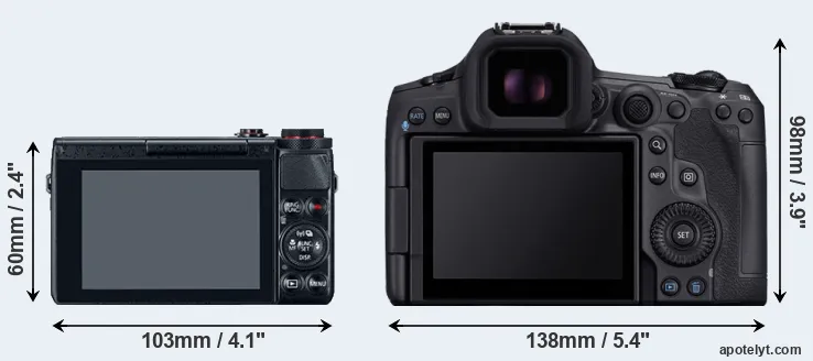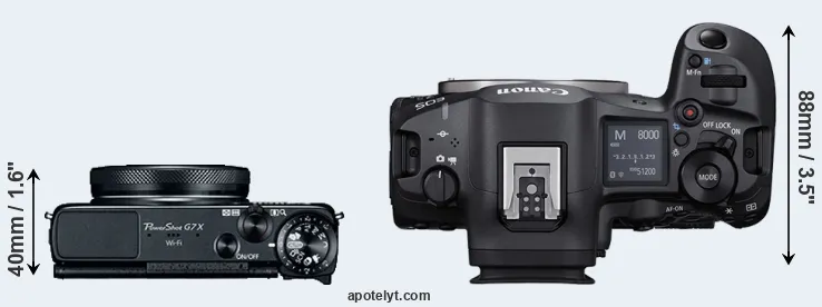 The above size and weight comparisons are to some extent incomplete and possibly misleading, as the G7X has a lens built in, whereas the R5 Mark II is an interchangeable lens camera that requires a separate lens. Attaching the latter will add extra weight and bulk to the setup.