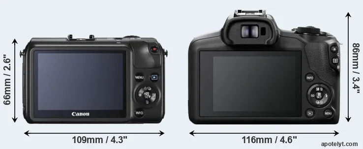 Technology-wise, the R100 uses a more advanced image processing engine (DIGIC 8) than the Canon M (DIGIC V), with benefits for noise reduction, color accuracy, and processing speed.