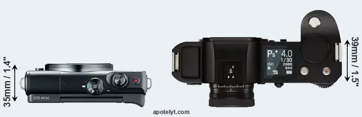 Going beyond this snapshot of core features and characteristics, what are the differences between the Canon EOS M100 and the Leica SL (Typ 601)? Which one should you buy? Read on to find out how these two cameras compare with respect to their body size, their imaging sensors, their shooting features, their input-output connections, and their reception by expert reviewers.
